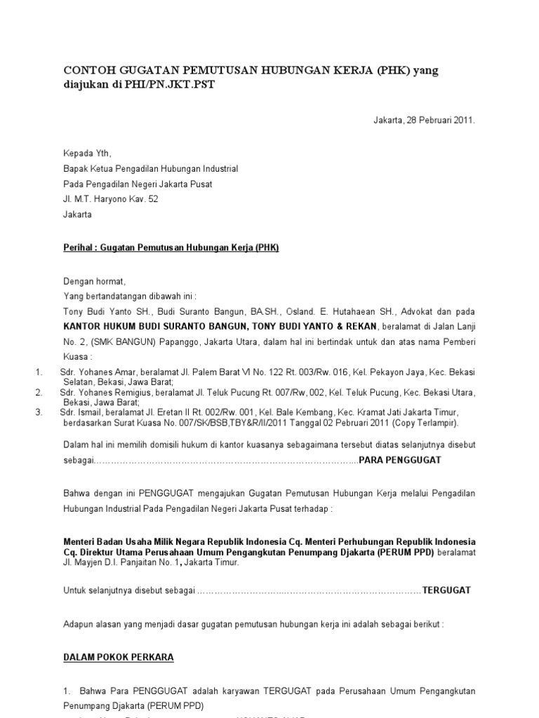 Demikian perjanjian bersama pemutusan hubungan kerjasama ini dibuat dan disepakati untuk kepentingan bersama antara kedua belah pihak dalam kondisi sadar tanpa ada tekanan dan paksaan dari pihak manapun jakarta 05 agustus 2015, pihak kedua pihak pertama. Dengan pemberhentian, berarti berakhirnya keterikatan kerja karyawan terhadap perusahaan. Pemutusan hubungan kerja (phk) oleh pt. Surat pemutusan hubungan kerja adalah surat yang digunakan oleh perusahaan ataupun instansi untuk memberitahukan kepada karyawannya bahwa akan diadakan pengakhiran hubungan kerja yang berakibat pada gugurnya sebuah hak dan juga kewajiban antara karyawan dengan perusahaan. Konvensi tentang pemutusan hubungan kerja atas prakarsa pengusaha (catatan: