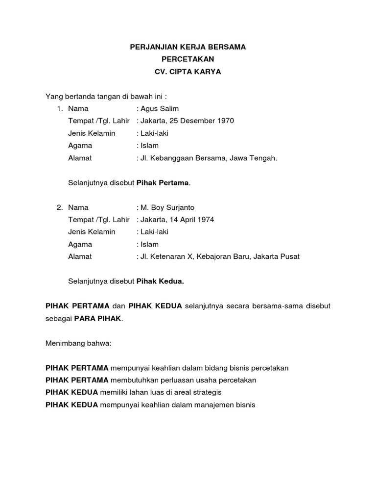 Adalah suatu peristiwa dimana seseorang berjanji kepada seorang lain atau dimana dua. Perjanjian ini berlaku selama 5 (lima) tahun sejak perjanjian ini ditanda tangani yakni tanggal 27 september 2013 dan berakhir pada tanggal 26 september 2018 dan atas kesepakatan kedua belah pihak dapat diperpgnjang dengan syarat dan. Contoh surat perjanjian kerja sama usaha. Melihat dari manfaat dan isi surat perjanjian kerja sama usaha di atas, kita tentu sudah dapat menggambarkan poin apa saja yang harus dimasukkan dalam surat perjanjian kerjsa sama usaha. Wajib menyerahkan keuntungan bagi hasil usaha kepada pewaris pihak pertama, bila pihak pertama berhalangan dan menunjuk seorang ahli warisnya untuk menerima.